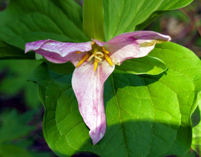Remember the trilliums? When they've been opened for a while, they start turning purple.