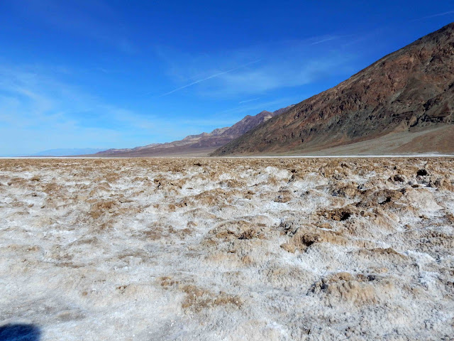 The rugged salt crust stretches on for miles, nearly covering the valley floor.