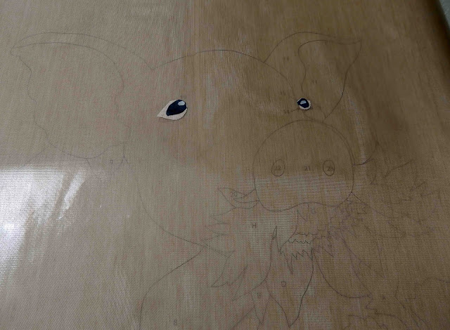 After that, I fused the eye pieces together. You can see the placement diagram below the teflon pressing sheet there.