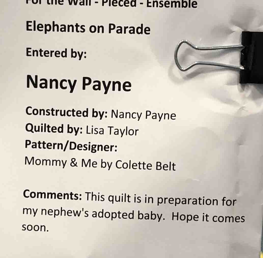 Each entry was accompanied by this ribbon, and so I have a feeling these were associated with the Quilts of Valor effort. (We didn't take the offered quilt show program because we didn't really want to carry it around.)