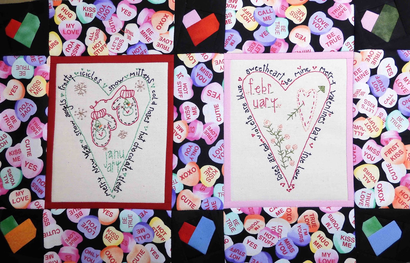 Oh yes, the 1/4" frames for the embroidered hearts make all the difference - nice job Barbara!