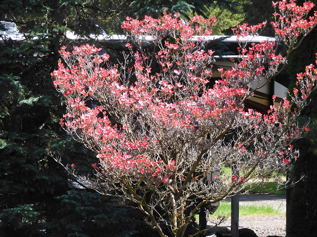 Behind it, the dogwood is blooming.