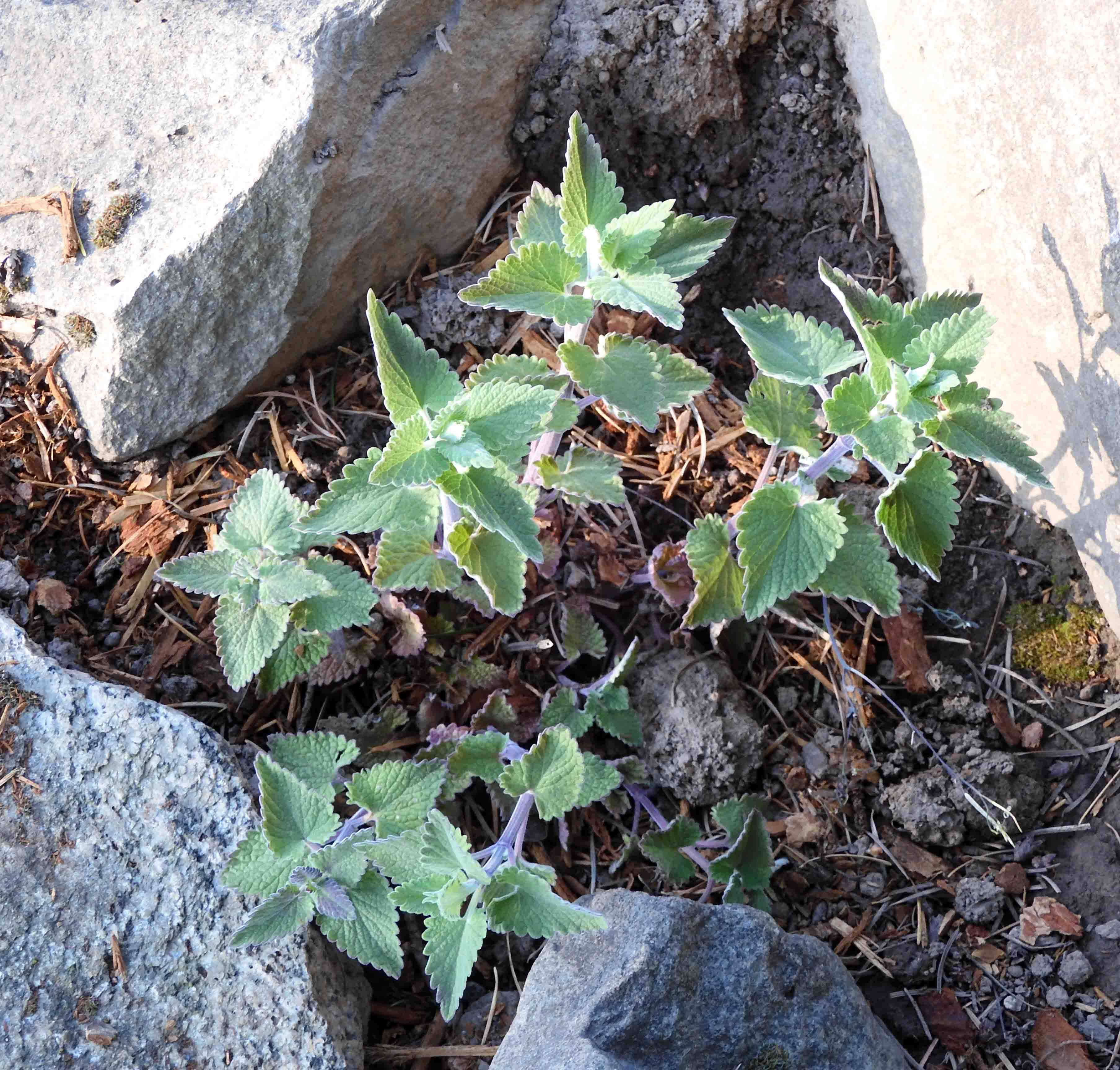 As I mentioned yesterday, I moved some volunteer catnip back to the original space allocated for the Gracie Memorial Catnip Garden. It was wilty when we went to bed the night before. Yesterday morning it was looking downright perky. It was tempting to move the Gracie stake and epitaph stone back to the original memorial, but I decided that would be jinxing its success. I decided to wait to see how it would do during the warmth of the day.