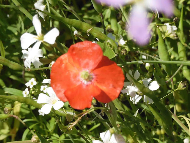 Here's some kind of little poppy. It has the papery petals of a poppy, and it is just a little smaller than the California poppies.