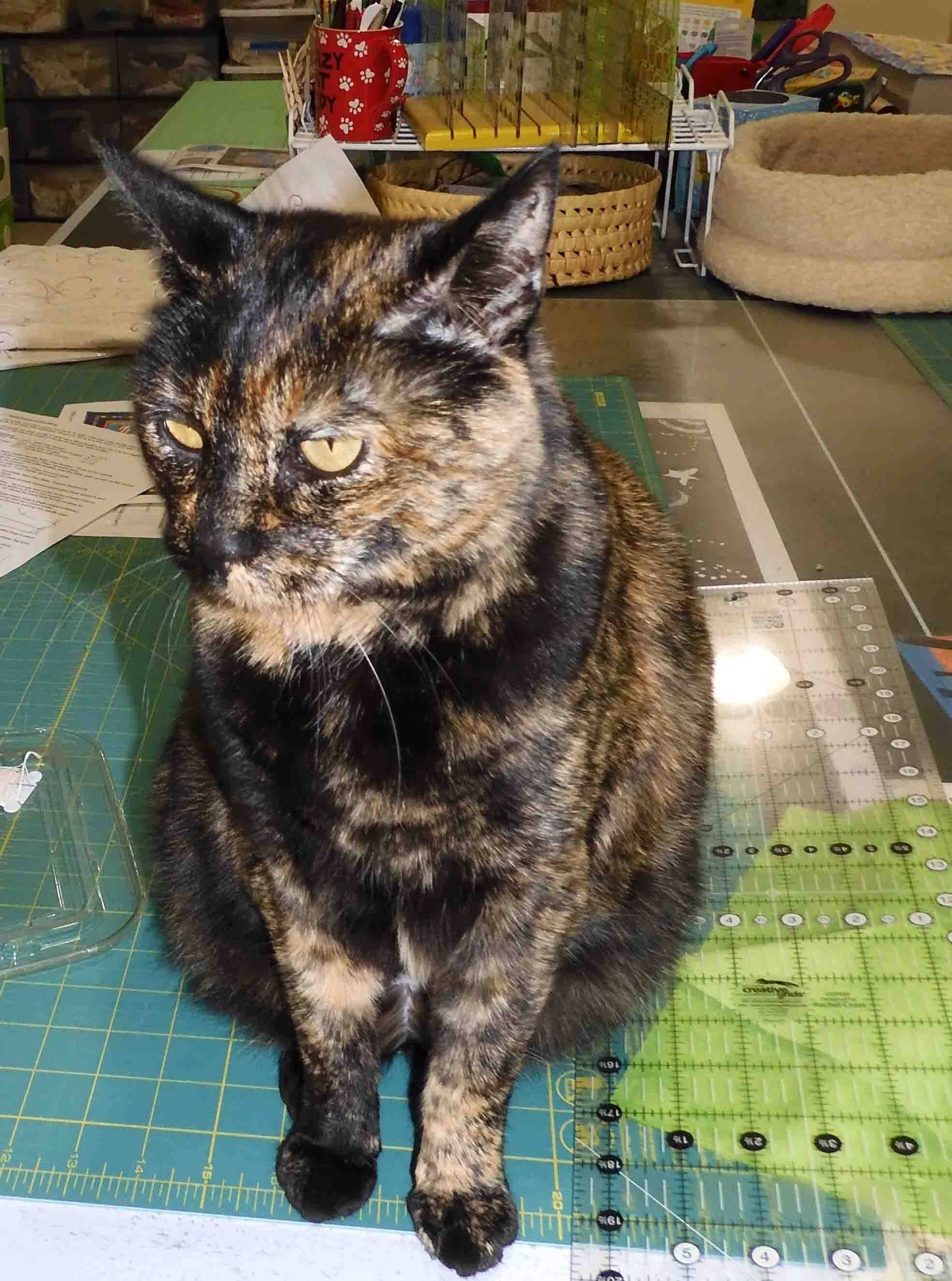 Roof is looking good and looks great on your house. The fringe really does add to the block (even though it is a pain to make and attach). I look forward to watching the progression of the kitty alphabet.