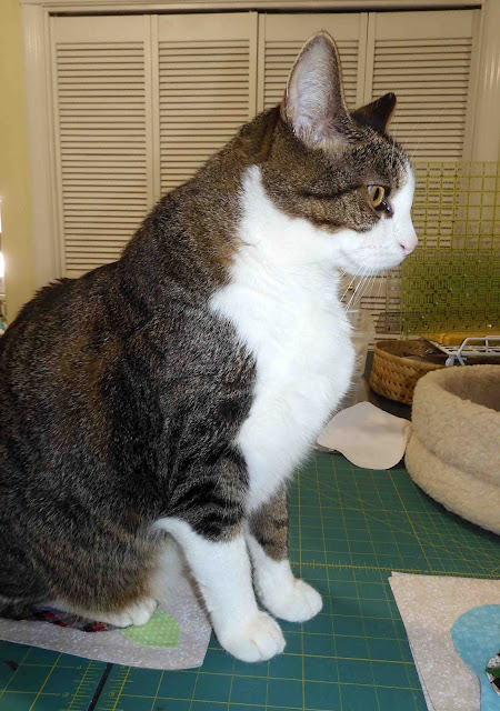 Smitty was my excellent helper cat yesterday. He used his tail to point the way as I cut out the flower shapes.
