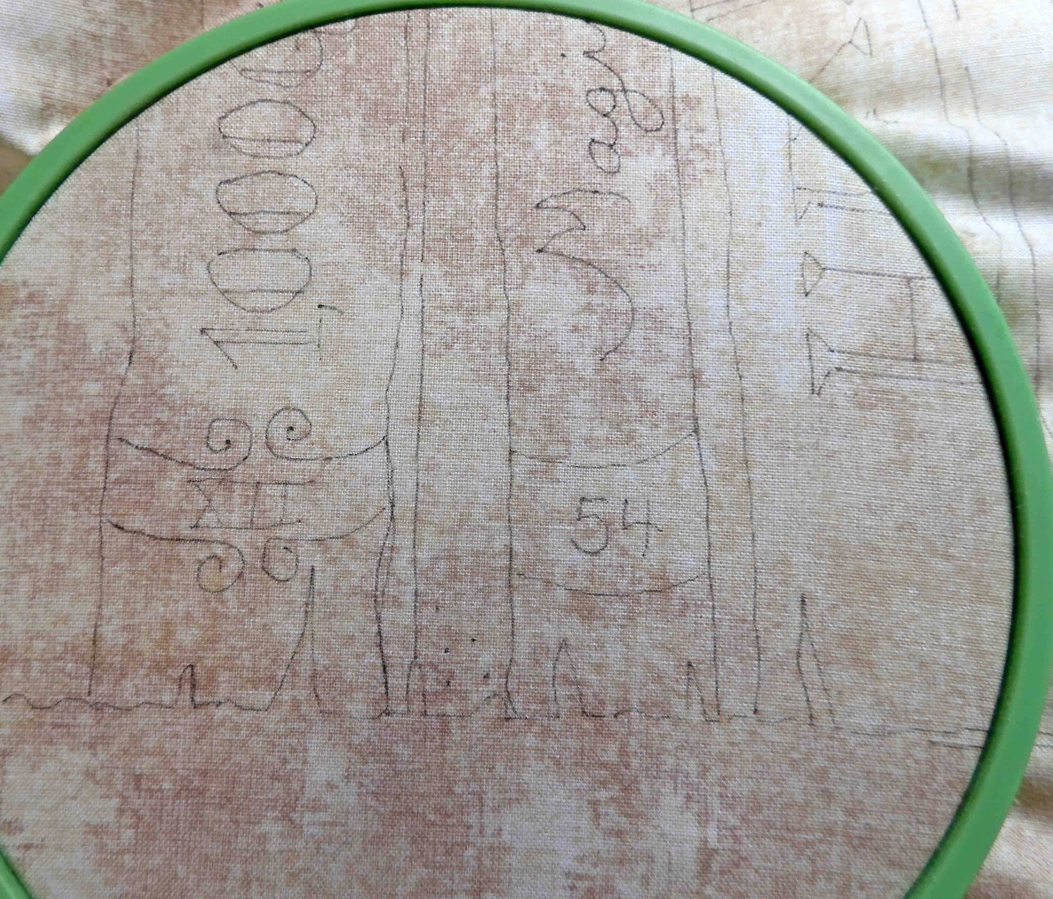 Those were sewn together into a row, and then I was ready to start on the tracing.