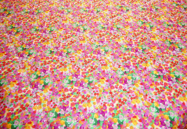 Here's how it looks from the back. It's a little hard to see in all that color, but I really love that fabric. I bought way more than I needed, and so I have enough for another quilt.