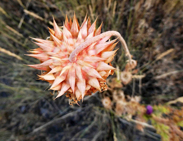 I walked out and caught this bloomed-out thistle, hanging its head.