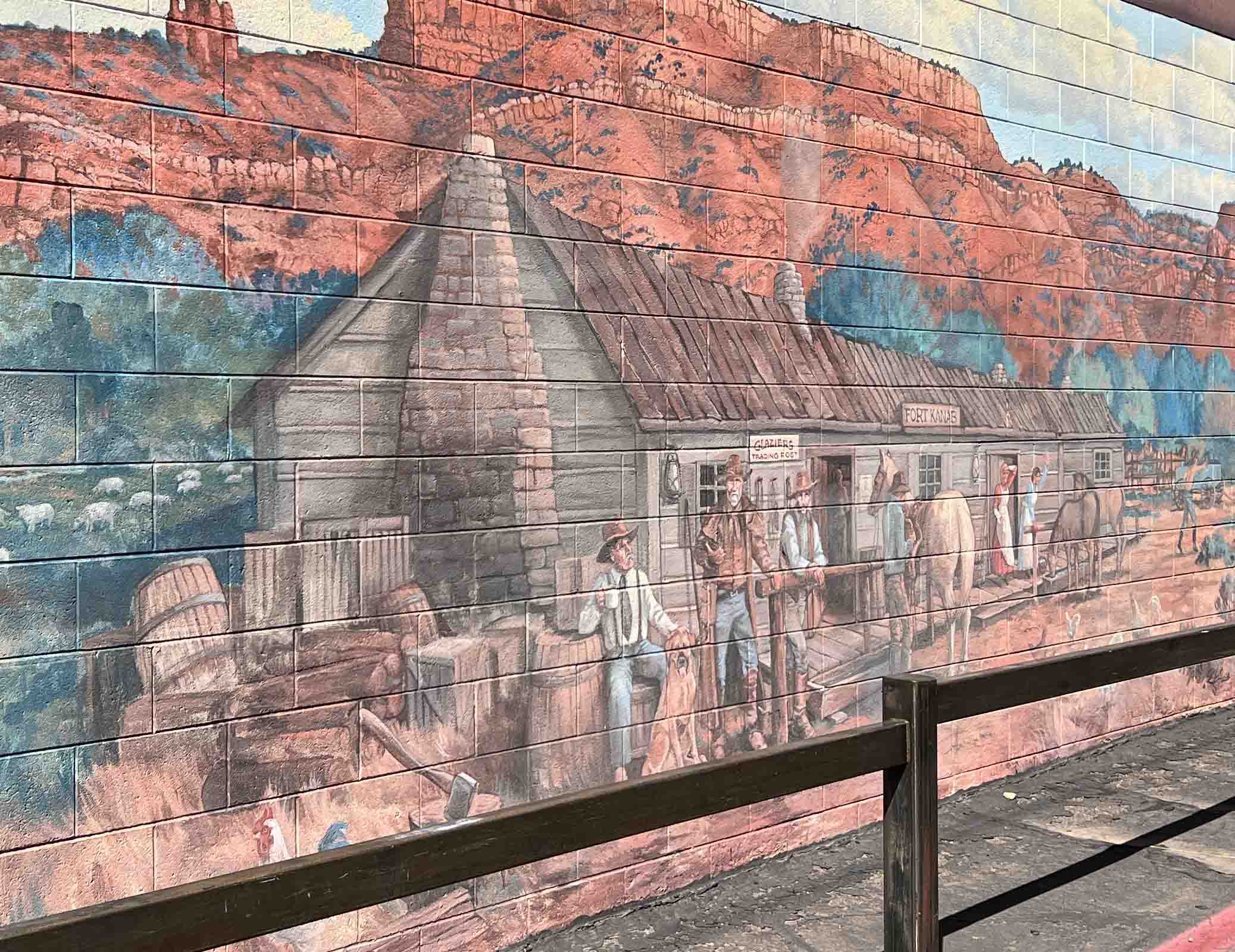 After that, we drove back into town to take care of some life business. We needed to refill one of our propane tanks, and we needed fuel. Then we did our grocery shopping for the week. There aren't many grocery stores in the little town of Kanab. We selected this one, called Glazier's. The entire side of the store was painted in a mural.