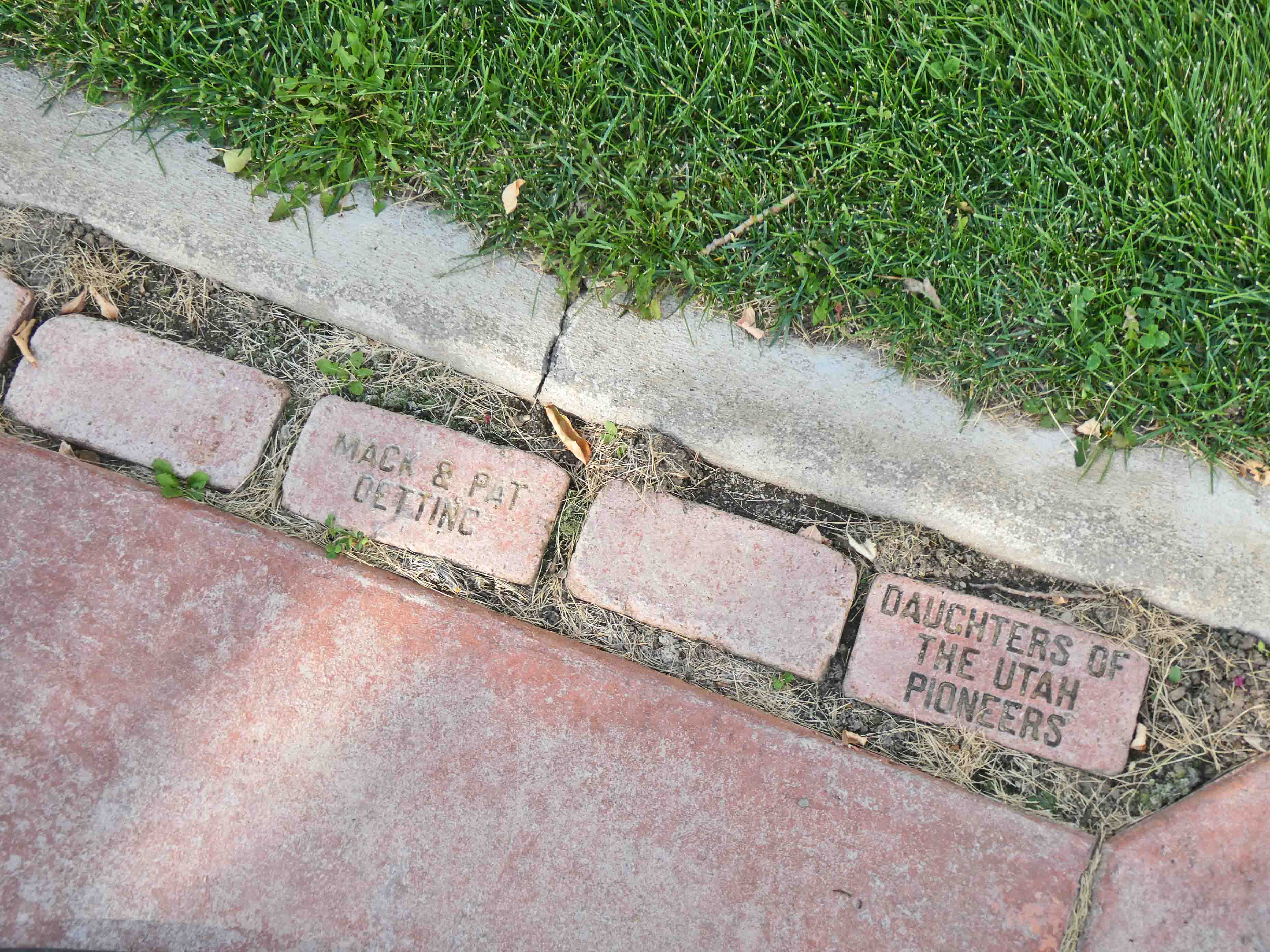 The edges of the walkway are lined with bricks, some including names of volunteers or donors.
