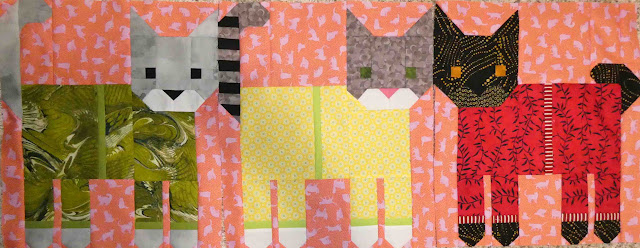 Here are the three cats I have for this quilt so far. Sadie's block is on the right. Hers has a Manx tail.