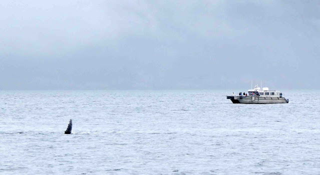 Next, we spotted whales. We spent quite a bit of time here when the whales dove deep and stayed down for about 7 minutes. When they resurfaced, I was able to capture several images of the "blow" as they resurfaced. These are Fin whales. They are the second-largest living things on the planet, weighing as much as 80 tons. The only larger living thing is the Blue whale.