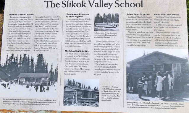 Getting back to yesterday's activities, we visited the Soldotna Homestead Museum. I'm including all of the informational signs about these cabins we're about to see. I'm not much of a sign reader, myself. You can read them or not. Mike reads all the signs and then tells me all I need to know. In exchange, I'm his social media filter, telling him what he needs to know so he doesn't have to engage with anyone. So, I'm hoping you'll be able to read these signs. I have a lot of pictures to show, and so I haven't cropped them out to make them more readable. If you're on a hand-held device, you can stretch them with your fingers to make them larger.